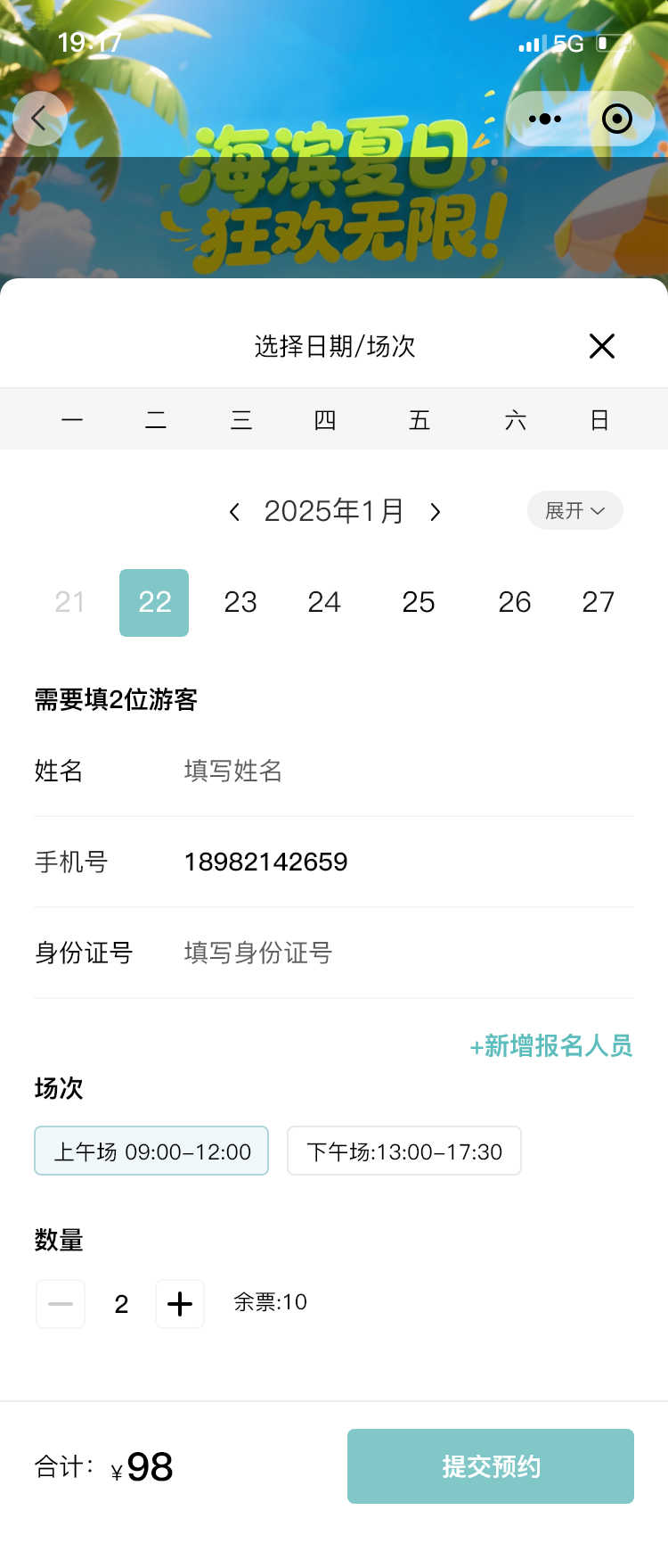 在线预约各种活动,可以选择日期、时间段,填写资料提交预约订单,可以设置免费或收费,可以按会员等级限制是否可以参加或者优惠价。